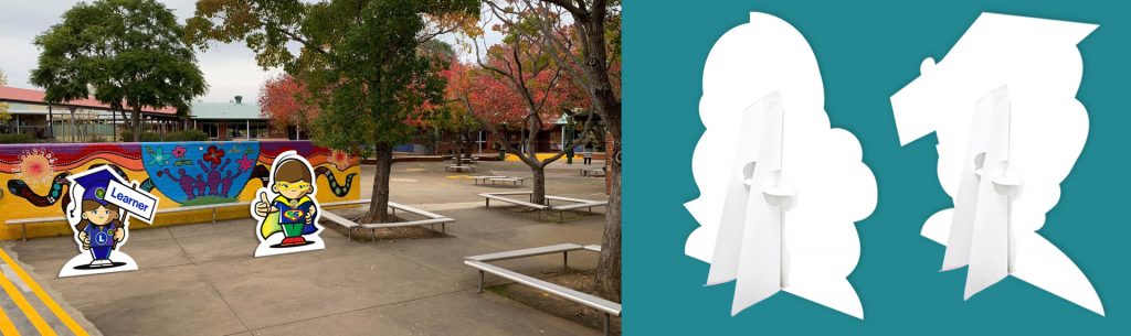 Stand Easy Cutouts offer a versatile solution for various purposes, such as assembly or playground activities, reinforcing your PBL program, or drawing kids’ attention to important reminders like “No running” or “Please don’t litter.” These cutouts are crafted from 5mm corflute and come with simple attachment struts. They can be cut into any shape and are finished with top-quality printing.